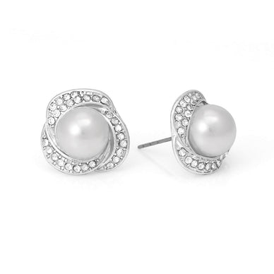 Silver-Tone Metal Cream Pearl Crystal Stud Earrings