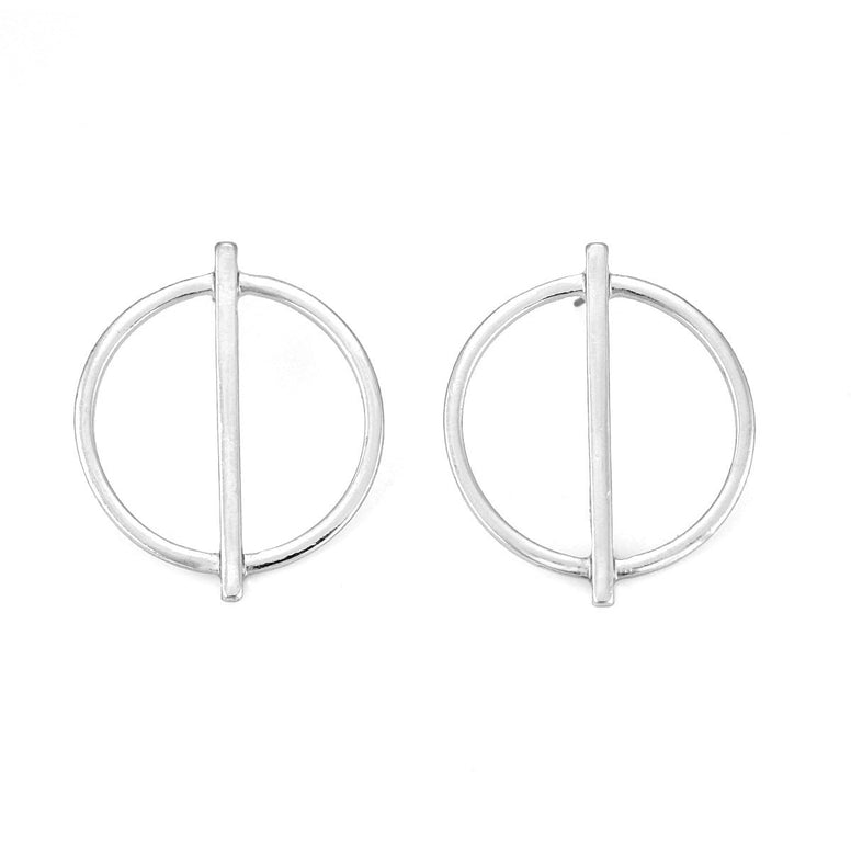 Silver-Tone Metal Circle Stud Earrings