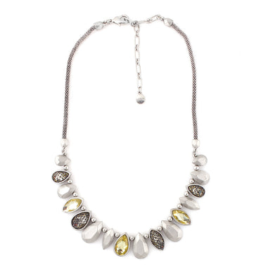 Silver-Tone Matte Finished Metal Yellow Crystal Necklace