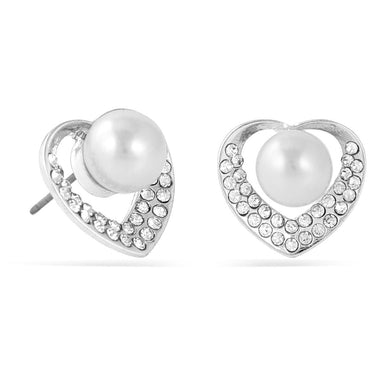 Add a touch of elegance with these silver heart 8mm pearl and crystal stud earrings. The perfect combination of pearls and crystals create a timeless and sophisticated look. The silver heart design adds a romantic touch to any outfit. Elevate your style with these stunning earrings.