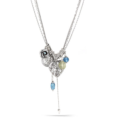 Silver-Tone Metal Heart Filigree Locket Flower And Coin Charm Necklace#211BL1101