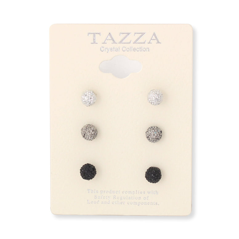 Silver Hematite And Black Ball Set Of 3 Post Earrings