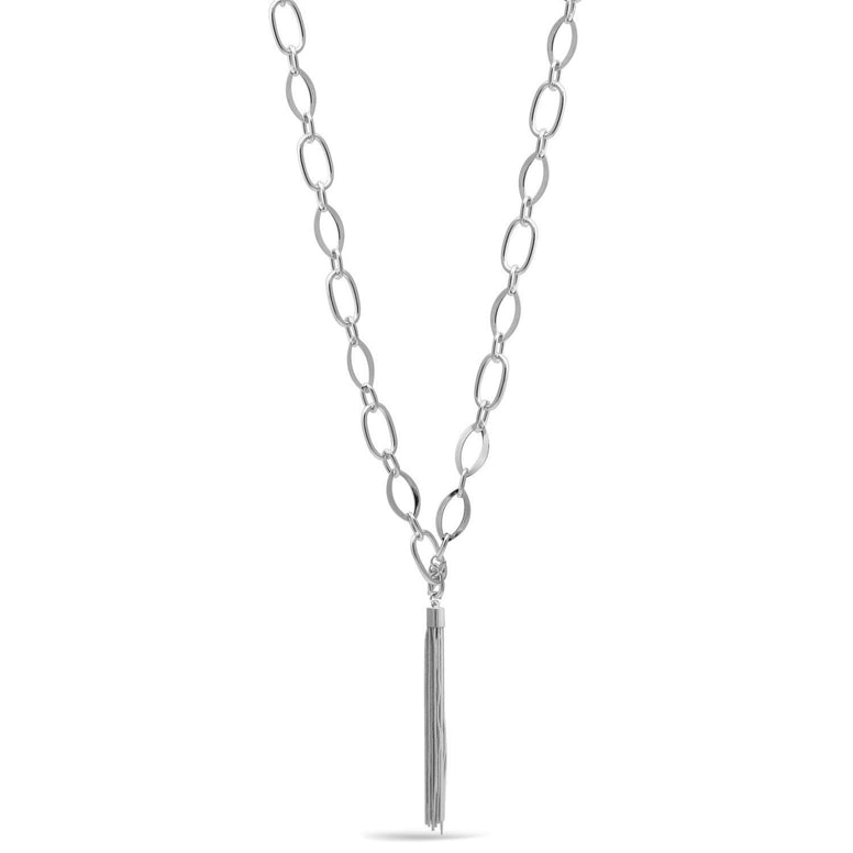 Add a touch of elegance to any outfit with our Silver Link Chains with Tassel Necklace. Made with high-quality Silver link chains and featuring a stylish tassel pendant, this necklace is the perfect accessory for any occasion. Elevate your style and make a statement with this sophisticated piece.