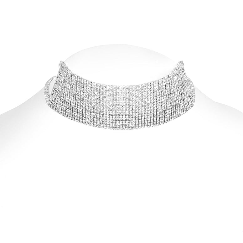 Silver-Tone Metal Rhinestones Crystal Adjustable Lobster Claw Closure Choker Necklaces