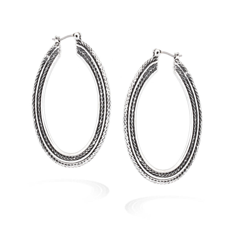 Silver-Tone Rope Oval Hoops Earrings