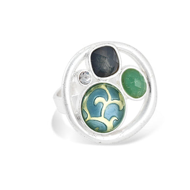 Silver-Tone Metal Turquoise And Crystal Adjustable To Size 7 Rings