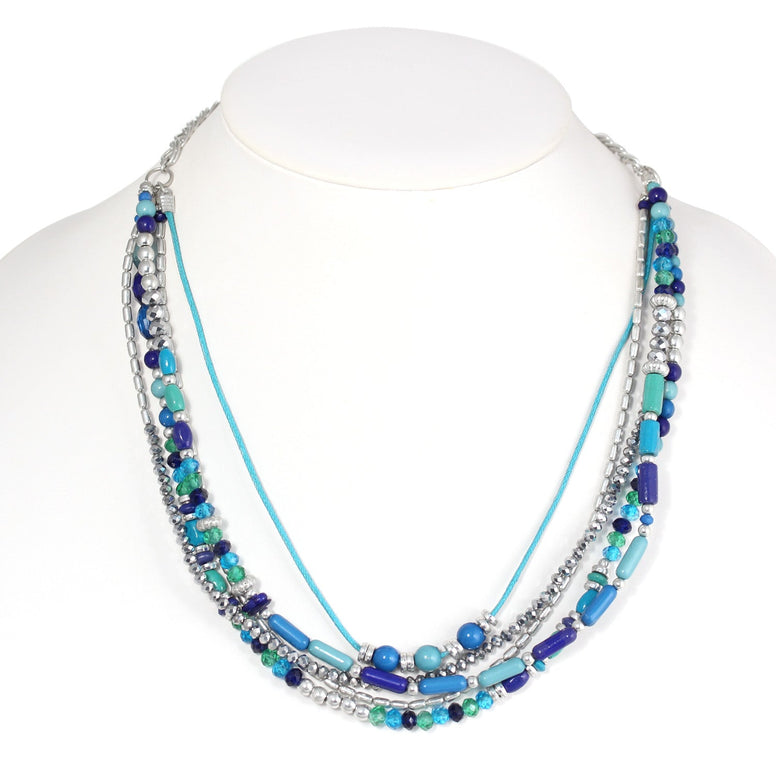 Silver-Tone Metal Turquoise And Navy Beads Adjustable Lobster Claw Closure Layered Necklaces