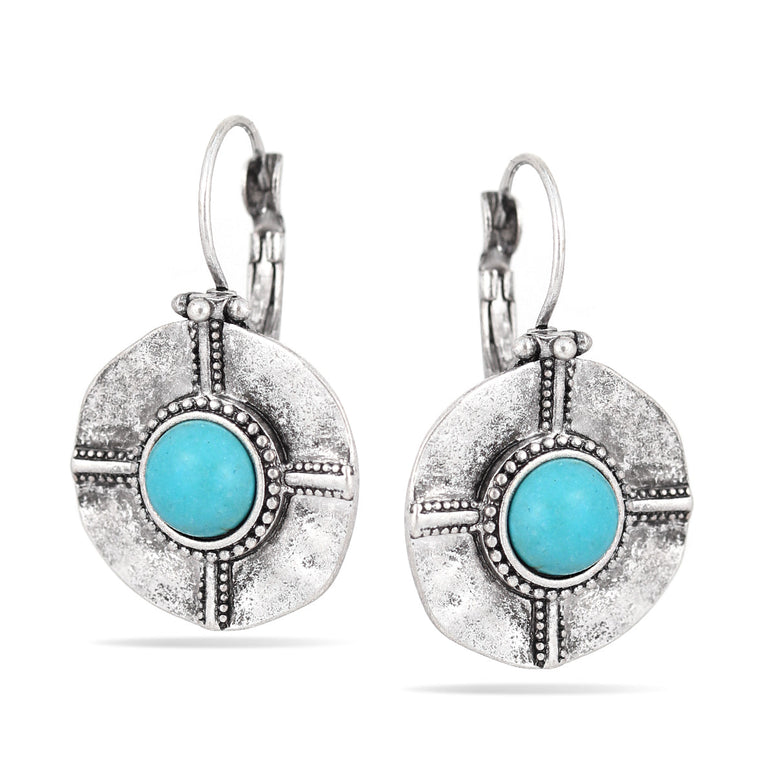 Silver-Tone Metal Turquoise Drop Earrings
