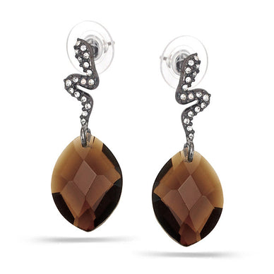 Hematite-Tone Metal Smokey Crytal Snake Crystal Stud Earrings