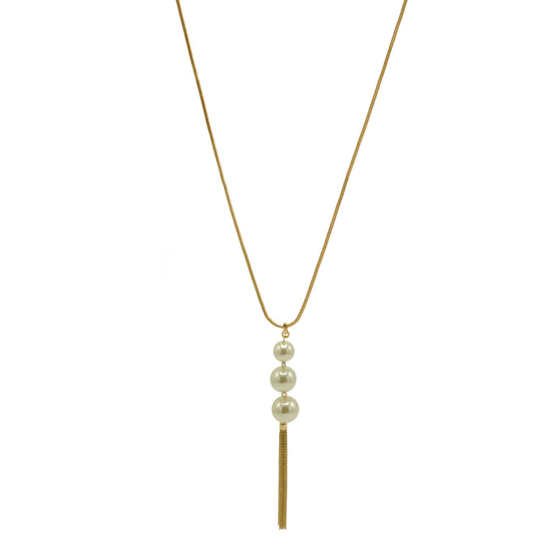 GOLD BIG CREAM PEARL LONG TASSEL NECKLACE #SQ466G