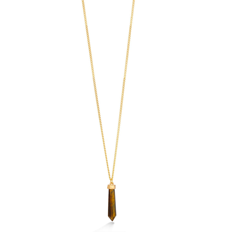 Gold-Tone Metal Tiger'S Eye Spike Pendant Adjustable Lobster Claw Closure Necklaces
