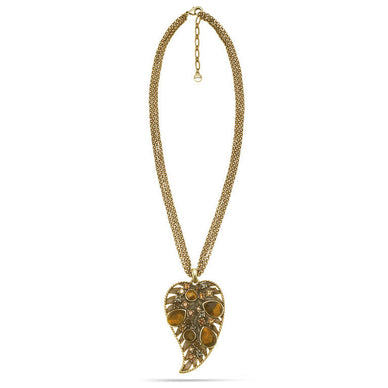 Gold-Tone Metal Tiger'S Eye Stone And Mix Crystal Leaf Pendant Neckalace