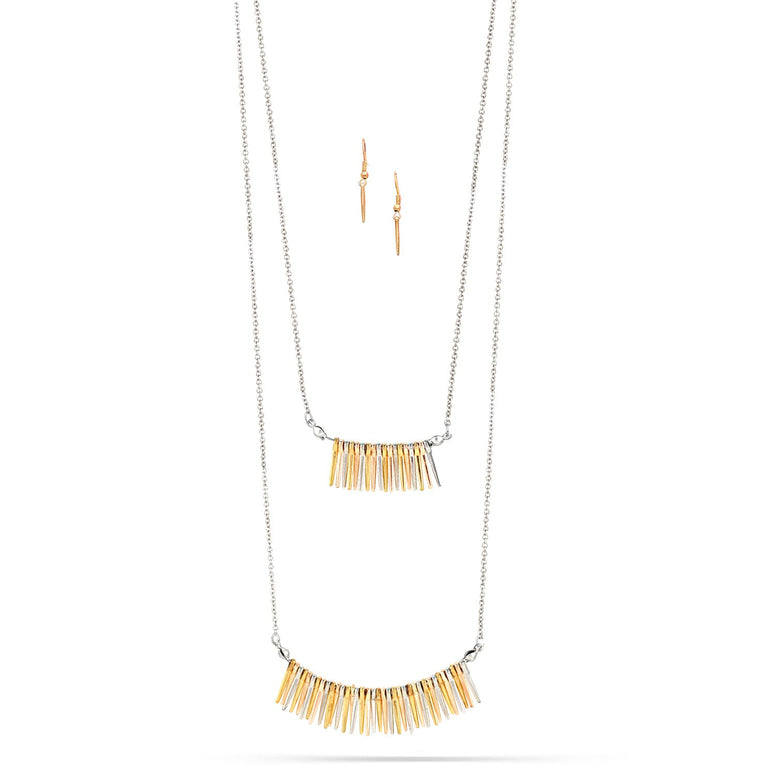 Gold-Rosegold-Silver-Tone Metal Two Layered Adjustable Lobster Claw Closures Necklaces And Earrings Set