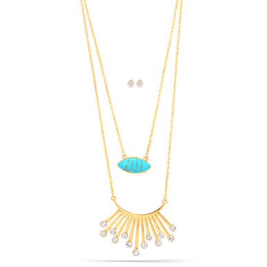 Gold-Tone Metal Turquoise And Crystal Necklace And Earrings Set