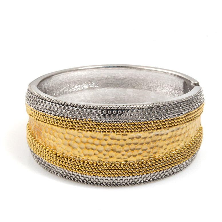 Two Tone Hammered Hinged Bracelet
