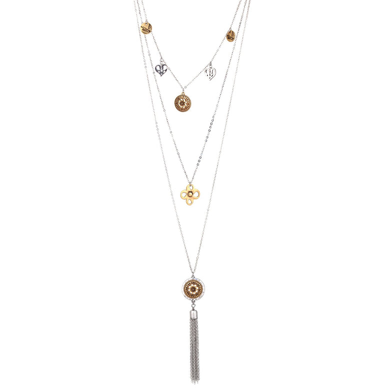 Gold-Silver-Tone Metal Layered Adjustable Lobster Closure Tassel Necklace