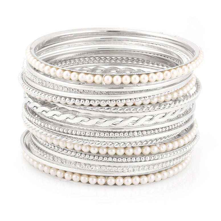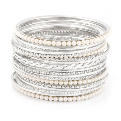 Silver-Tone Crystal Pearl Set Of 20 Bangles