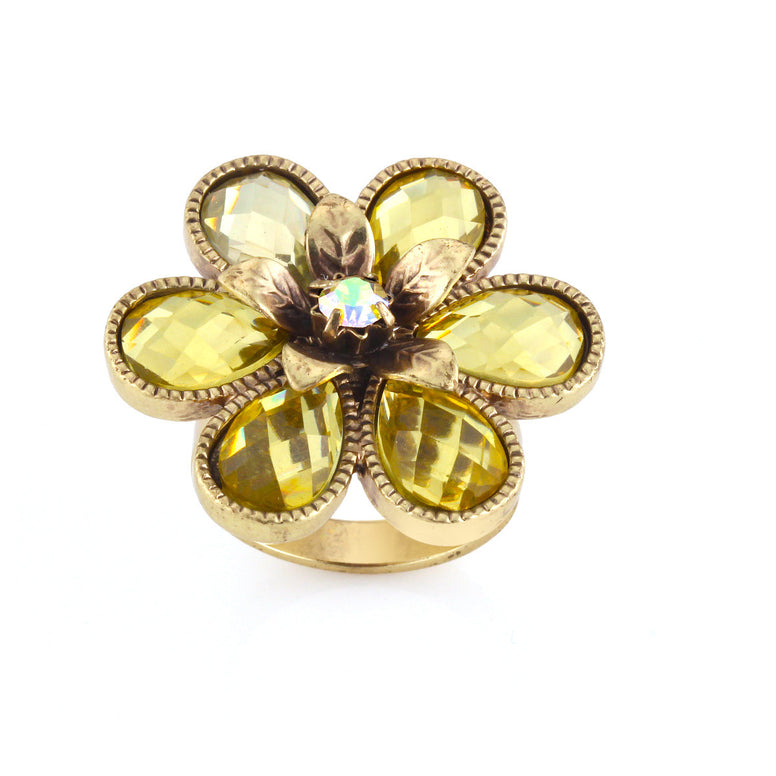 Gold-Tone Metal Yellow Crystal Adjustable Ring